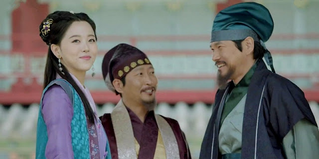 Что еще по сюжету из уже произошедшего. Беспечный 10-й принц Ван Ын становится жертвой розыгрыша братьев, убедивших его в чувствах, которые якобы испытывает к нему Хэ Су. Ну, это из серии "вам обмануть меня не сложно, я сам обманываться рад". Много забавных моментов в этой линии до момента, когда Ван Ына принуждают к политически-выгодному браку с дочерью генерала, которая по-военному груба и неотёсана, но безумно любит нашего героя. Ван Ын разочарован тем, что придуманные им чувства Хэ Су на самом деле оказались всего лишь выдумкой, и пока воспринимает жену тем, кем она и является - навязанной обузой. Надеюсь, у этой пары будет счастливое будущее, уж очень трепетна Сундок к Ван Ыну.