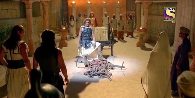 Пока Пуру добирался до Персии, Александр её, эту Персию успешно повоевал. Дарий сильно разозлен, что сатрапии в Малой Азии уже вассалы Александра, гневается и грозится разбить македонян в личном столкновении. Тут обращает на себя внимание отличная работа гримеров. По сравнению с тем, как выглядел Пранит Бхат в прошлых сериях, на лице уже лежит печать усталости и изможденности. Но Дарий все еще уверен в своей победе!